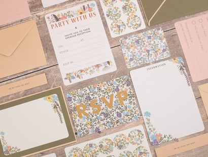 Amongst the Wildflowers showcases beautifully illustrated floral designs, ideal for adding countryside charm to your wedding stationery and creating the perfect rustic wedding ambiance.
