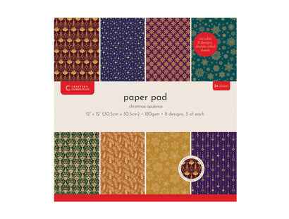 Bring an opulent shine to your crafts and projects with the Christmas Opulence paper pads. Featuring 12 unique gold foil designs and a pack of glittery and matt foil special finish card, use as a base layer, background, or statement element in handmade cards, gift boxes, tags, and more.