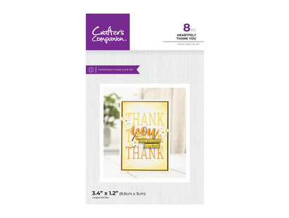 Each set in this papercraft collection includes dies and stamps, specially designed to be used together. Pair the cut-in and cut-out dies to fill your card front from edge to edge with a fun and uplifting message.