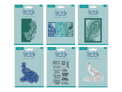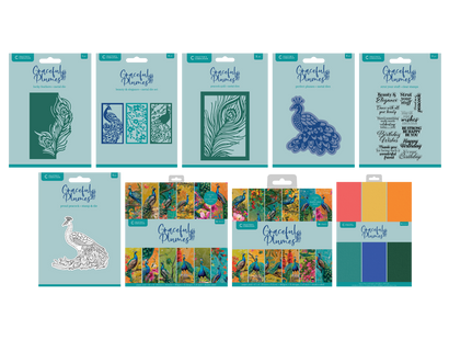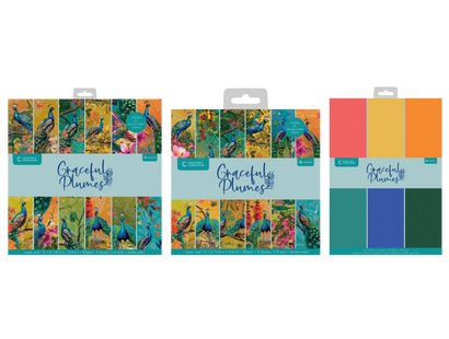 Show off your creativity like a peacock proud of its feathers with the Graceful Plumes collection by Crafter’s Companion. This range features entrancing paper pads and linen card packs adorned with peacocks and florals on bright, colourful backgrounds, with intricately designed stamps and dies for your next proud and elegant crafts and projects.