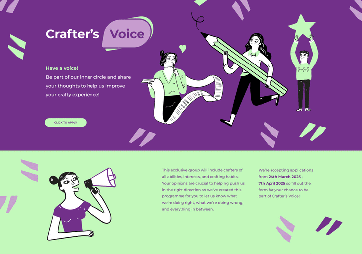 This exclusive group will include crafters of all abilities, interests, and crafting habits. Your opinions are crucial to helping push us in the right direction so we’ve created this programme for you to let us know what we’re doing right, what we’re doing wrong, and everything in between.Â
