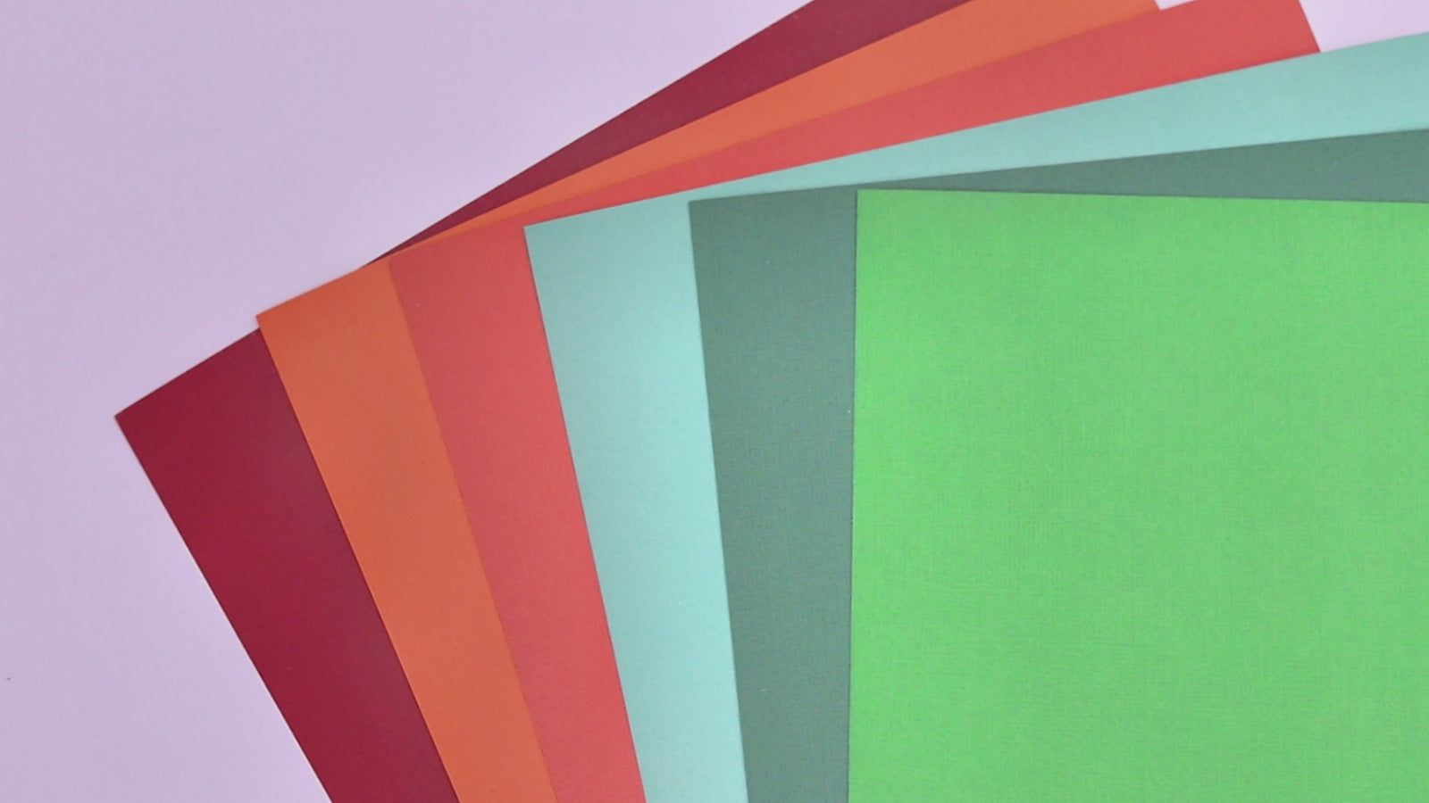 - 250gsm weighted card in six colours – crimson, orange, red, blue, olive, and dark green.