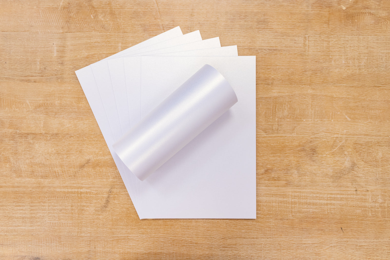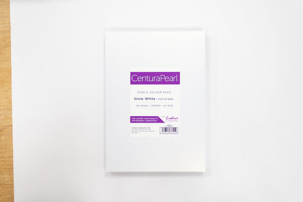 - 50 sheets of A4 Snow White Gold Centura Pearl card with "barely there" gold flecks.