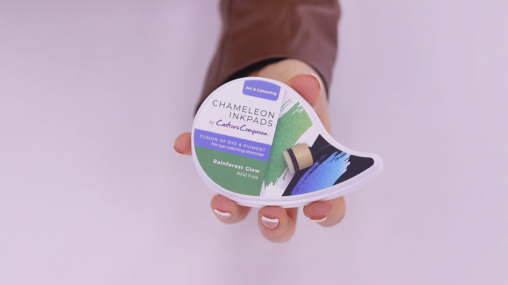 The Chameleon Inkpad, Rainforest Glow from the Chameleon Inkpad collection by Crafter’s Companion will transport your papercraft to a sundrenched, tropical island. An innovative colour change inkpad with a fusion of dye and pigment, it contains a shimmering colour that changes when used on black and white card.