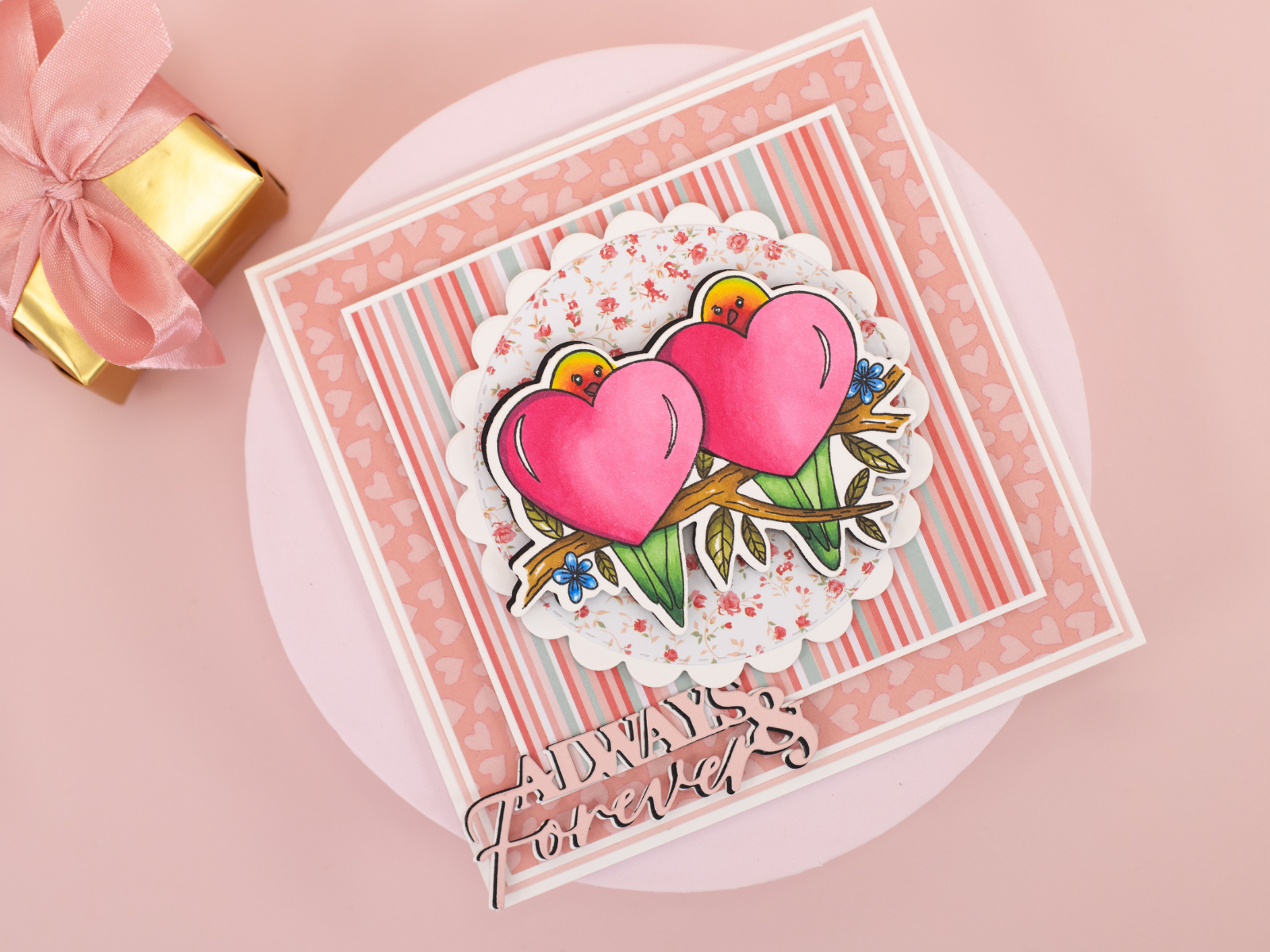 The With Love Stamp & Die set from Crafter’s Companion’s Love is in the Air collection is ideal for adding a feeling of love and affection to your crafts and projects. Perfect for sharing with loved ones, this set creates a gorgeous design of two heart-shaped birds on a branch for a cute addition to your next card, gift box, and more.