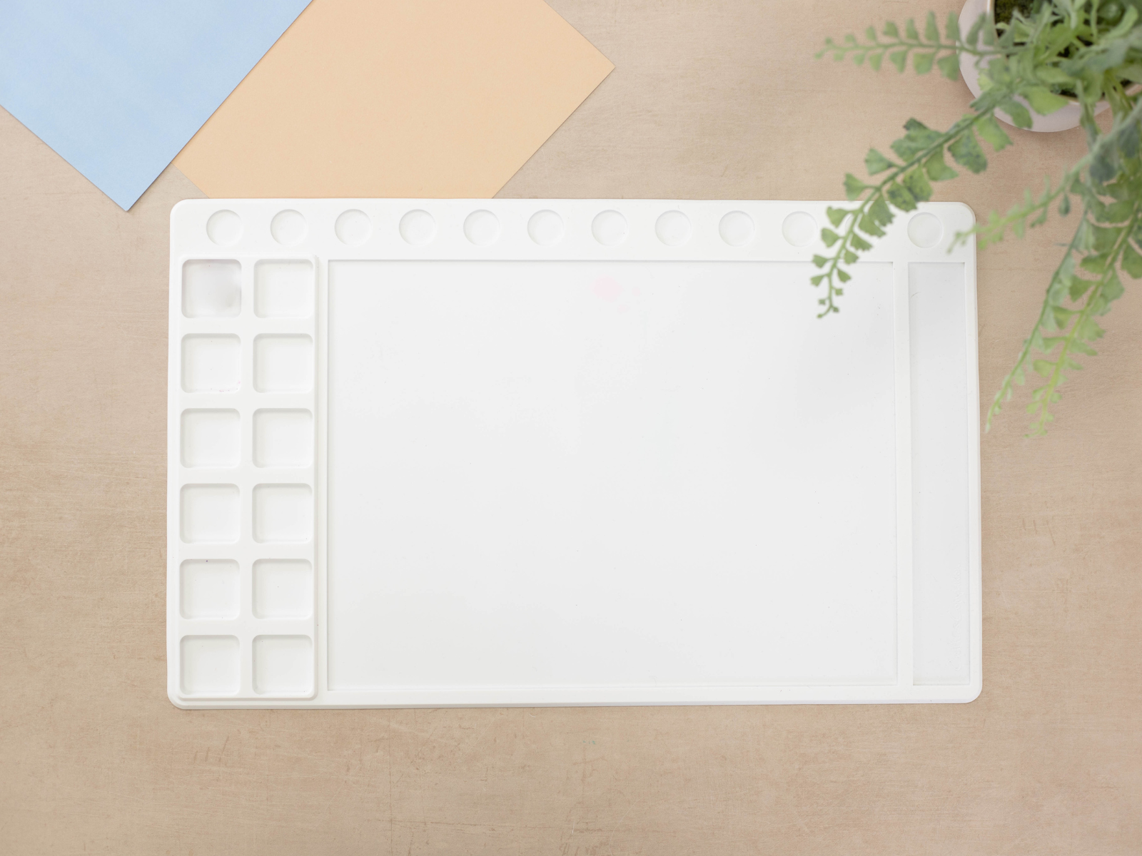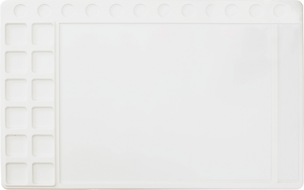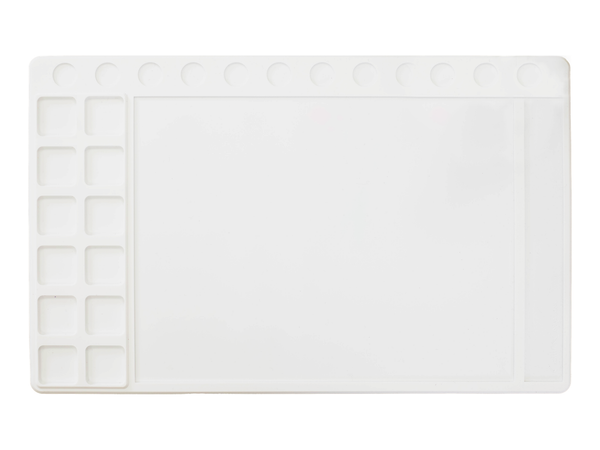 - Recesses to hold colours and mix mediums.