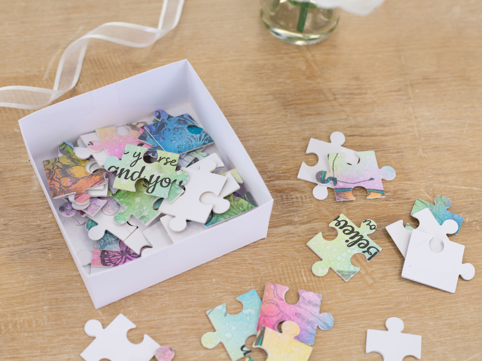 The white single sided mount board from Crafter's Companion is the ideal material to transform photographs, artwork and images into a jigsaw puzzle, or a unique keepsake card with a fun message for your recipient to piece together.