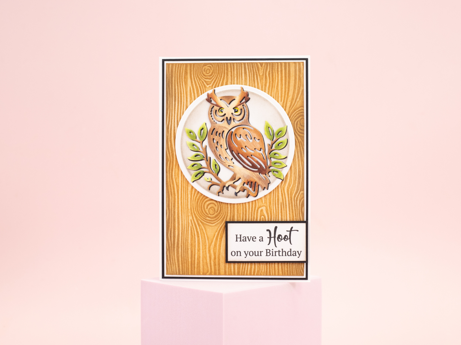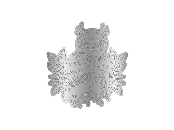 - 2-piece set including a sentiment stamp and a die to create an owl design.