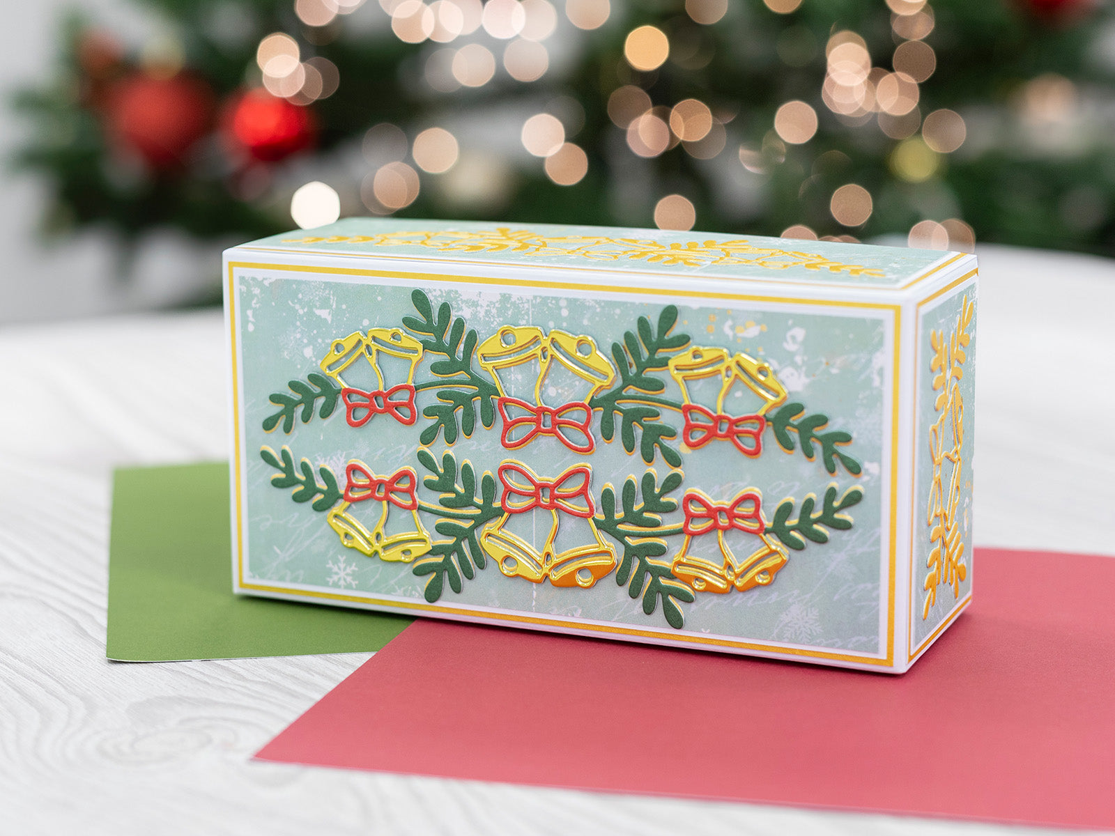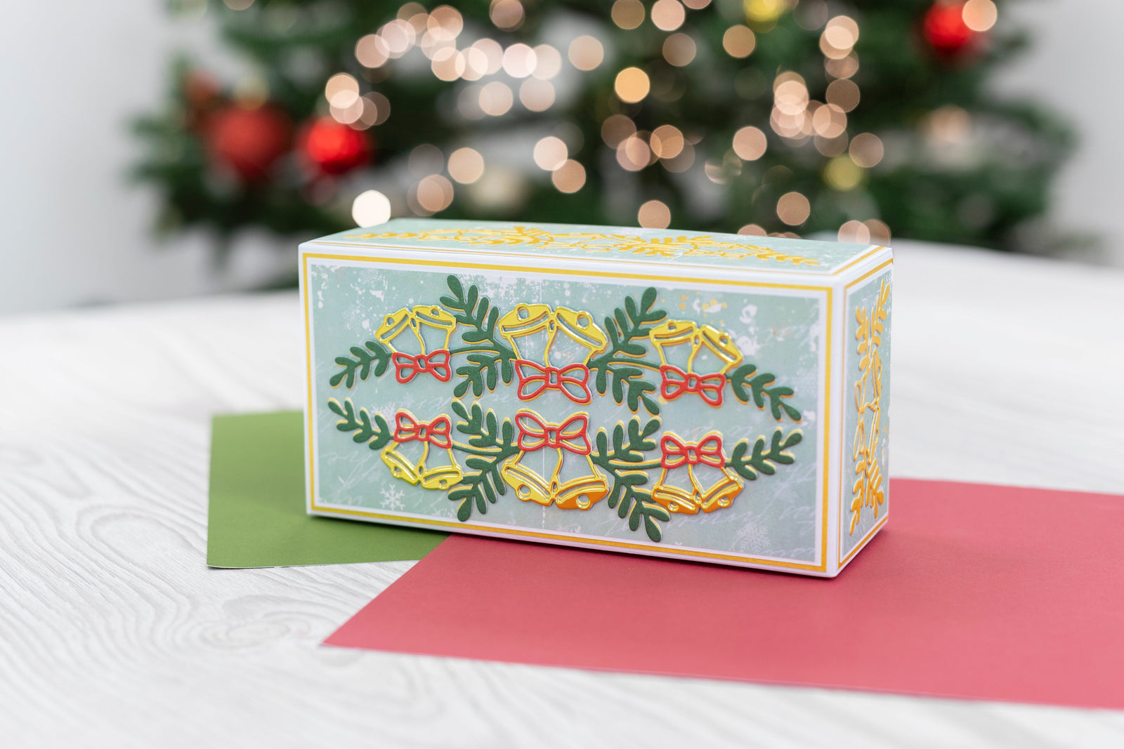 Ring in the festive season with your crafts and projects with the Christmas Bells Metal Die Edge’able from Crafter’s Companion. This metal die cuts the image of three pairs of bells within seasonal foliage, ideal for giving your Christmas-themed handmade cards and bespoke gift box a festive look.