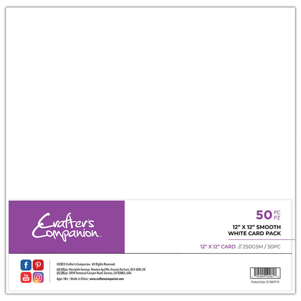 Crafter's Companion 12" x 12" Smooth White Card Pack - 50 Sheets