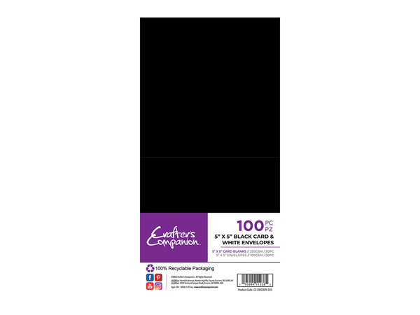 Crafter's Companion 5" x 5" Black Card & White Envelopes - 100 Pack