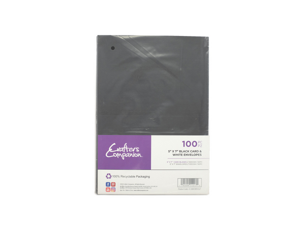 Crafter's Companion 5" x 7" Black Card & White Envelopes - 100 Pack