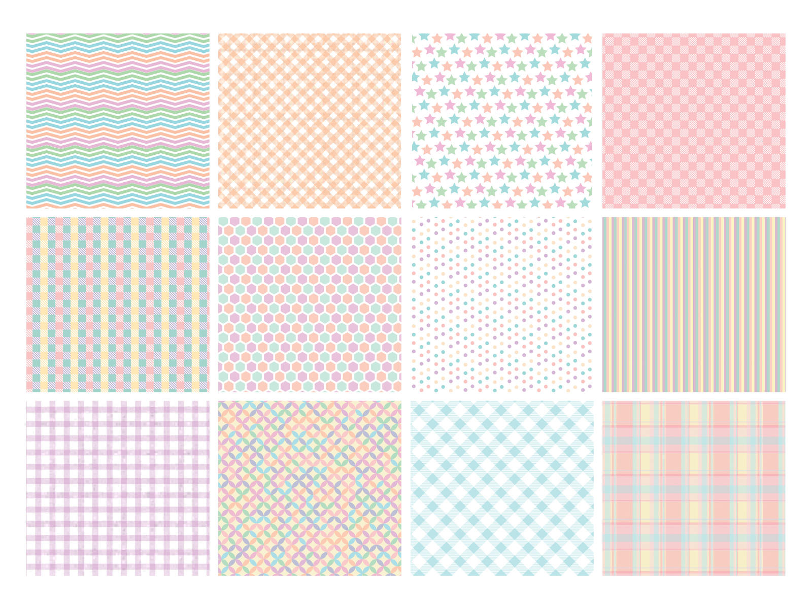 - 12 designs, three sheets of each.