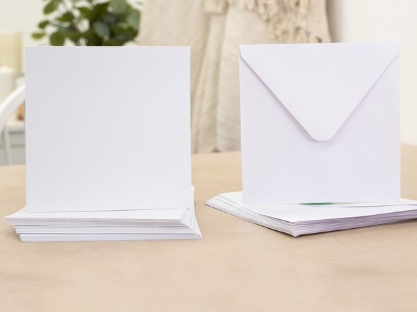 Ready to post - The pack includes 25 8” x 8” white envelopes. So, you can craft, write and post your cards to family and friends with ease. The card blanks are 300gsm and the matching envelopes are 100gsm - so whatever your cardmaking project, you can be sure of a professional finish!