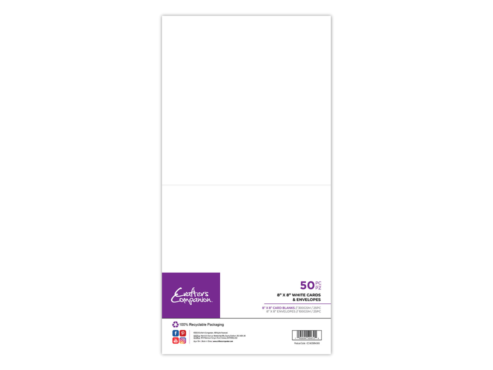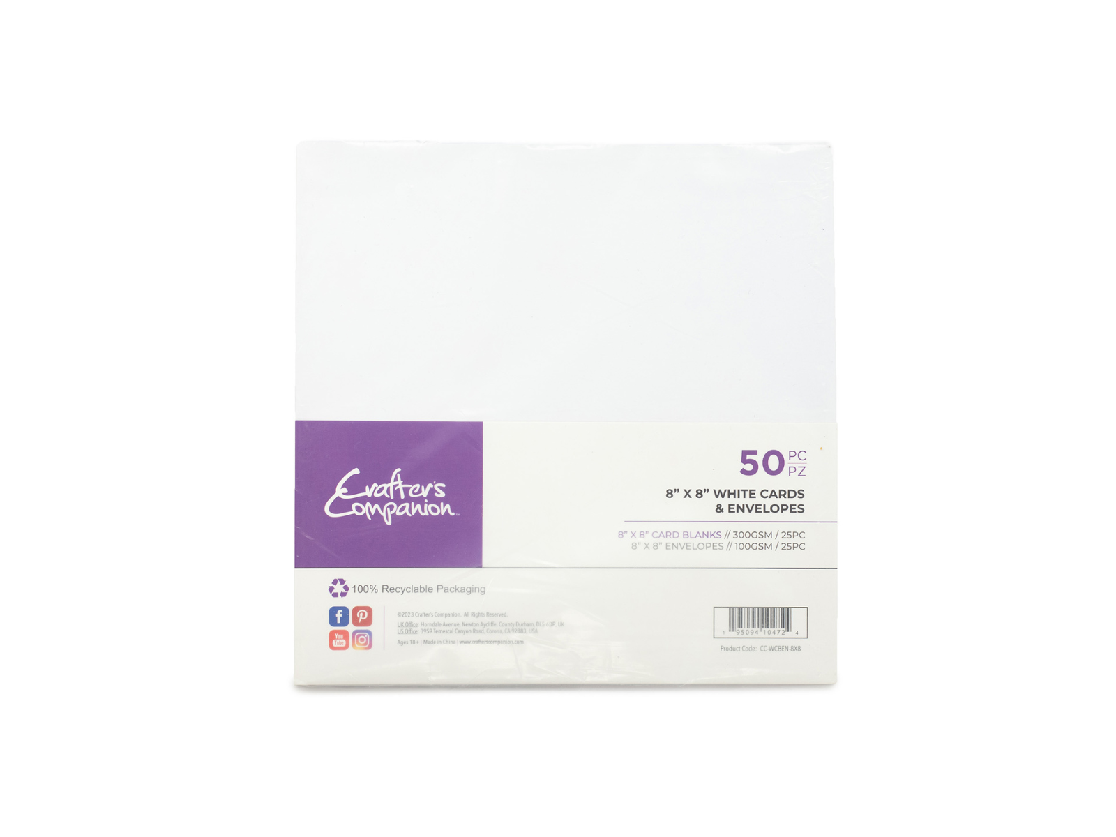 - Crafter’s Companion 8” x 8” White Card & Envelopes - 50pc