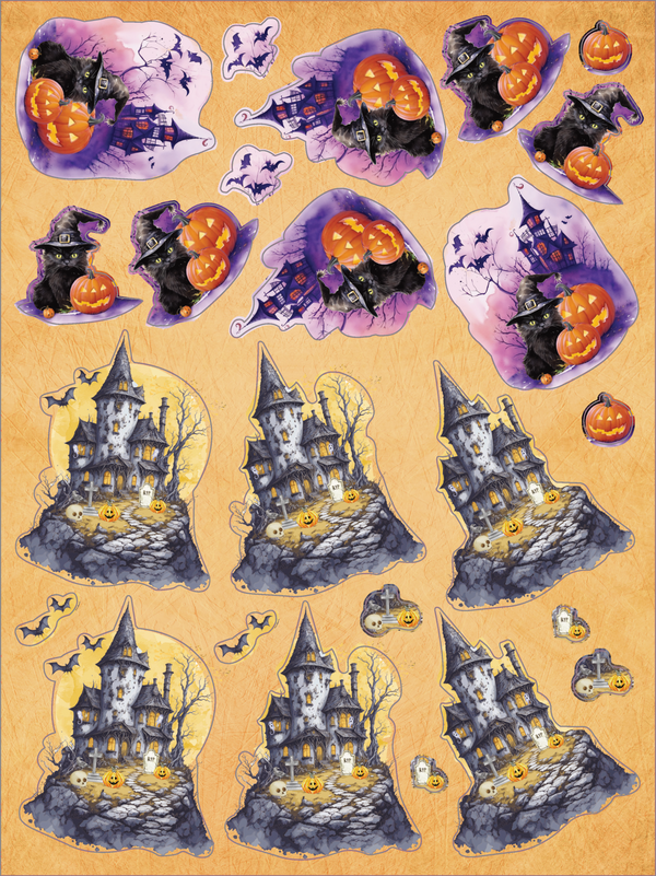 Decorate your cards, scrapbook pages, gift bags, boxes and home decor pieces with the spookily illustrated Halloween designs with the Crafter’s Companion Die-Cut Topper Pad. Everything is already cut out so all you have to do is pop out the piece you want to use and attach it to your project with glue or foam pads!