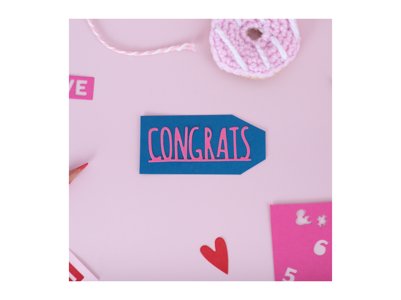 - 1 die to cut out a ‘Congrat’s message in a modern font