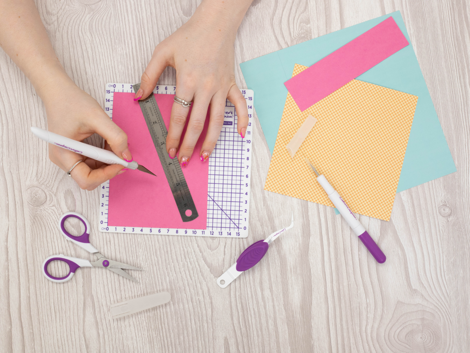 Portable crafting - The 6” x 6” cutting mat and 6” ruler are perfect for papercraft projects of a range shapes and sizes. They’re also the perfect, compact and portable option to pop into a bag and take to a craft workshop or event!