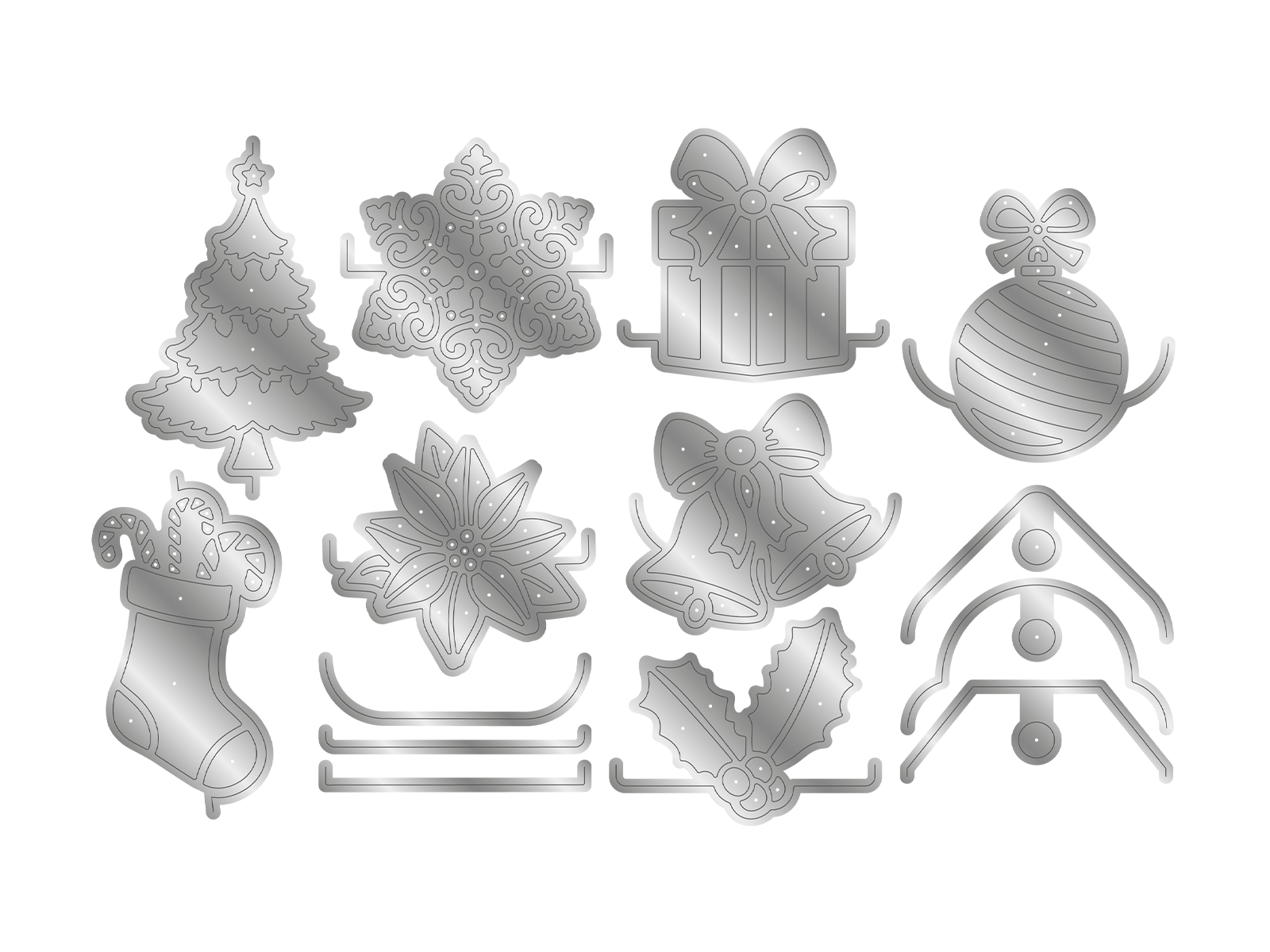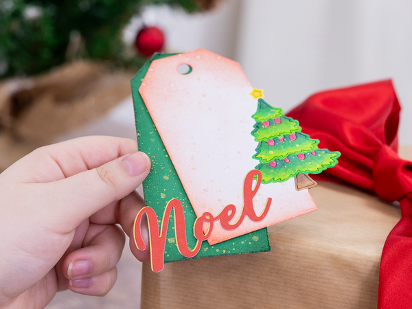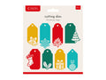 - 14-piece set includes different shapes and Christmas-themed images to create tags.