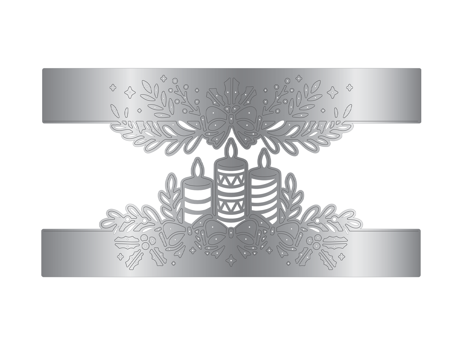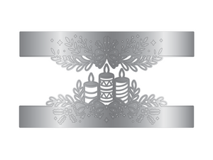 - Includes two metal dies to create the scene of lit candles with festive foliage and bows.