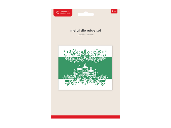 Bring a warm glow to your crafts and projects with the Candlelit Christmas Metal Die Edge Set by Crafter’s Companion. This set of dies is designed to be used together for your handmade Christmas cards, die cutting the top and bottom of a rustic scene of candles lit amongst traditional festive foliage.