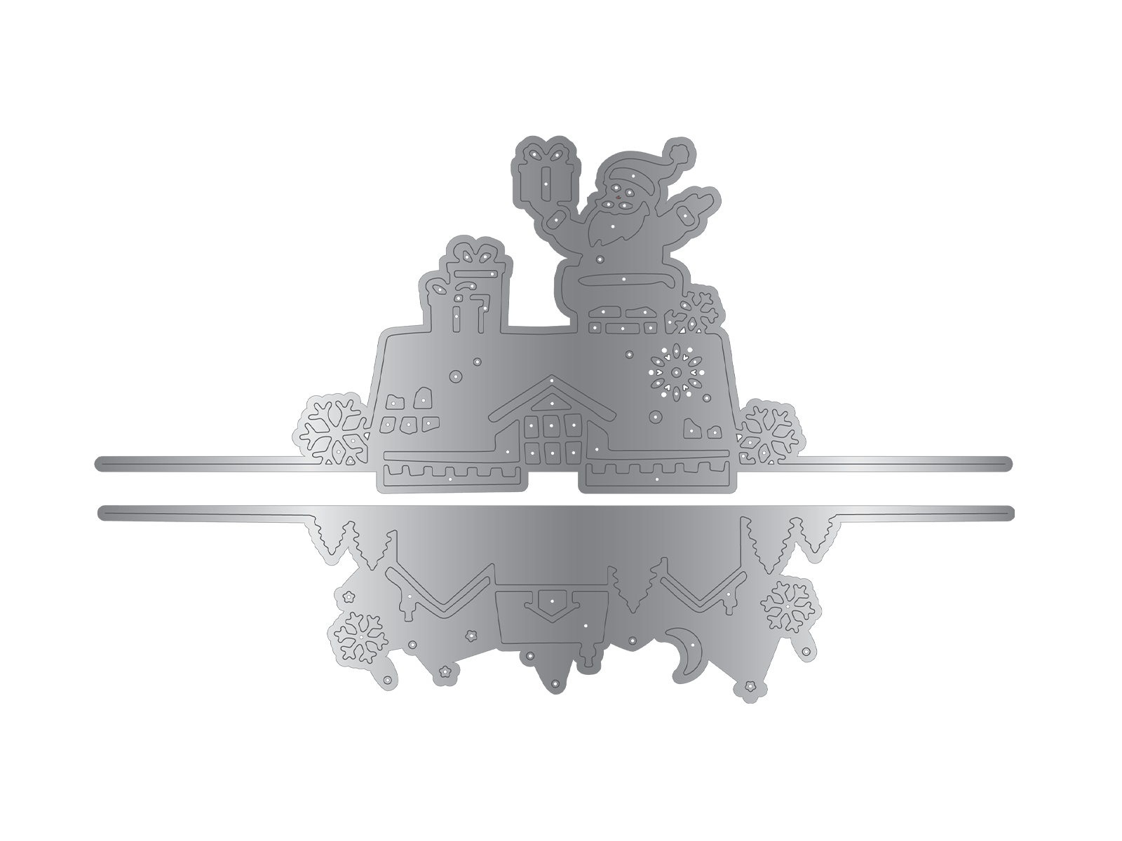 - Includes two metal dies to create the scene of Santa delivering presents on rooftops on Christmas Eve.
