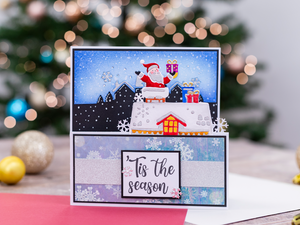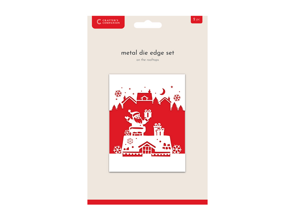 Give your handmade Christmas cards the gorgeous look of the classic Christmas Eve present delivering with the On the Rooftops Metal Die Edge Set by Crafter’s Companion. Designed to be used together for cardmaking, these two metal dies create the top and bottom of the cards design featuring Santa climbing down a chimney with presents.