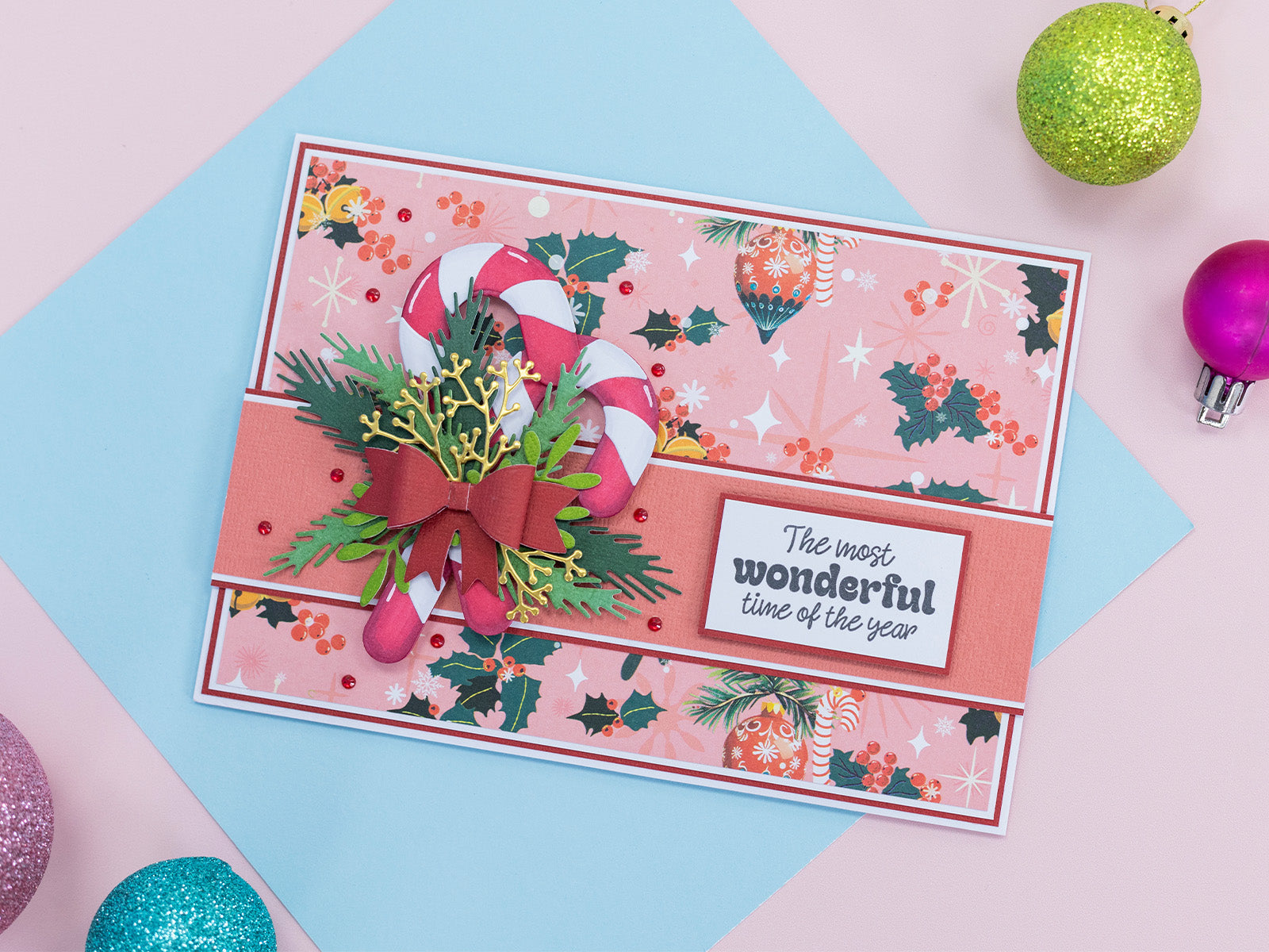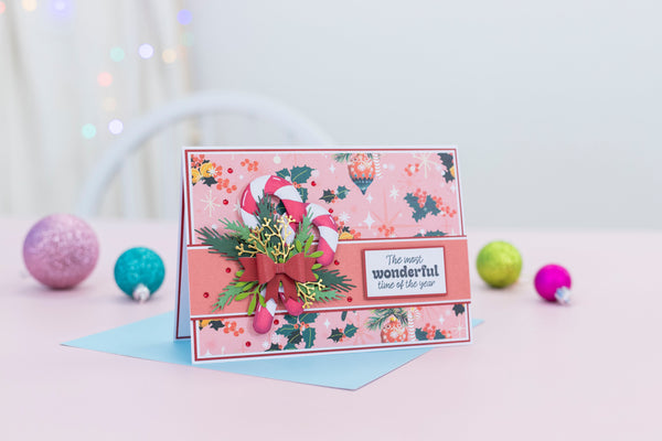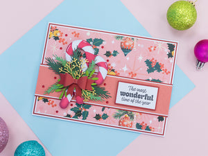 Make your festive Christmas crafts even more festive with the Candy Cane & Foliage Metal Die Set from the Retro Christmas Collection by Crafter’s Companion. This set of 10 dies includes everything you need to create a gorgeous candy cane surrounded by mistletoe and tied in a neat bow, ideal for your handmade Christmas cards and decorations.