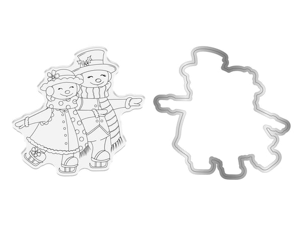 - 2-piece set includes one stamp and one metal die of two people wrapped up warm ice skating.