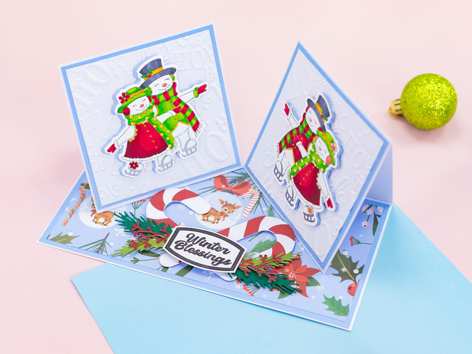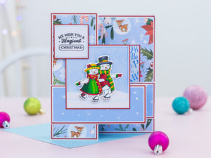 Build your crafts and projects like Snowpeople with this Stamp & Die Set from the Retro Christmas Collection by Crafter’s Companion. This set includes the stamp and die to create two snowpeople ice skating together, perfect for your next handmade Christmas card, gift box, and more.