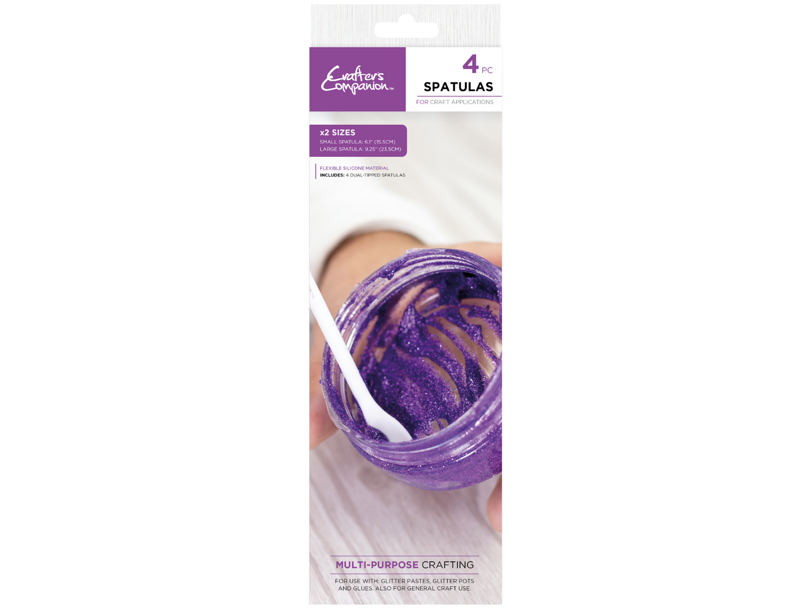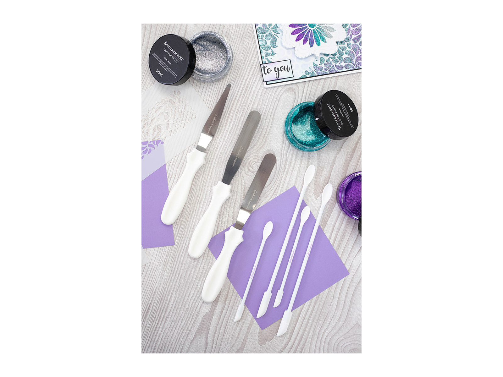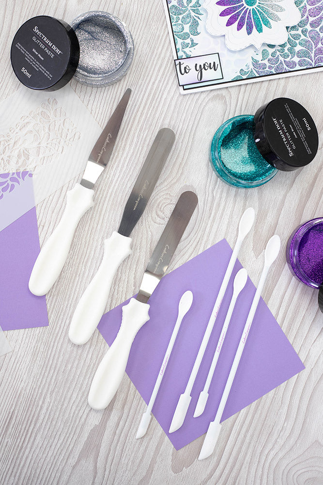 Controlled application - With two sizes of spatula to choose from, you can apply glitter paste or paint in a range of styles. Whether you're creating detailed stencilled designs or adding bold sweeps of colour, you can be sure of a professional finish with these craft tools.