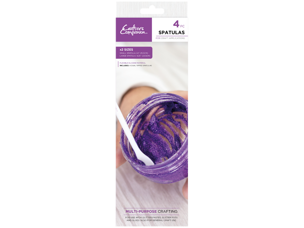 Make the most of your favourite creative mediums with Crafters Companion Spatulas. Double-ended and made from fantastically flexible silicone, you can get every last drop of glue, paint, glitter or paste from any pot. Then just flip the spatula to spread your medium evenly across your project! With two sizes and four spatulas in each set, you can