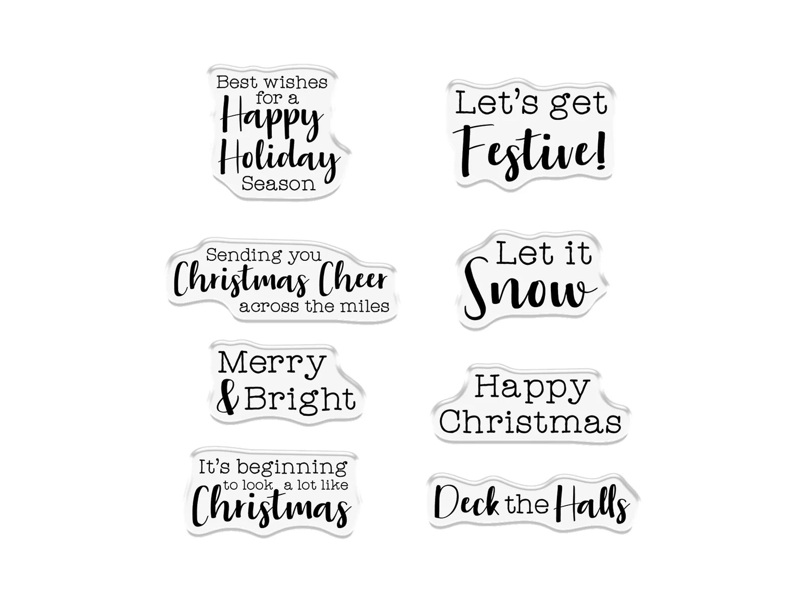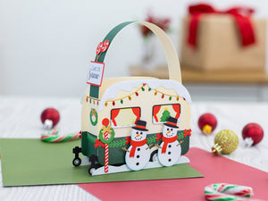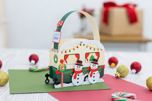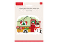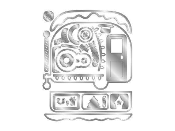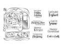 - 40-piece set includes stamps and dies to create a shaped card base of a snow-covered festive camper van, complete with a snowman, wreath, Christmas lights, and more.