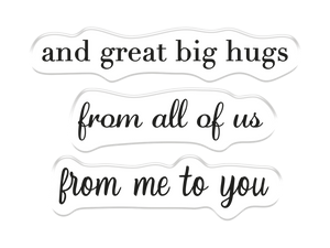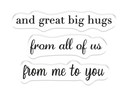 Contains 3 stamps and 1 die Features the sentiments: 'With Love From All Of Us', 'And Great Big Hugs', 'From All Of Us' and 'From Me To You'