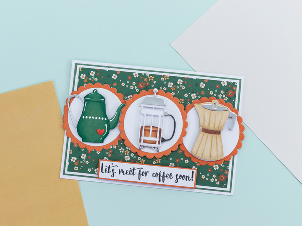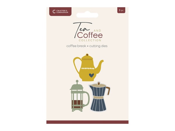 Pour yourself a cup of tea and coffee onto your crafts with the Coffee Break Metal Die Set from the Crafter’s Companion Tea & Coffee Collection. This set includes three different sets of coffee makers, including a stovetop pot, a cafetiere, and a classic coffee pot.