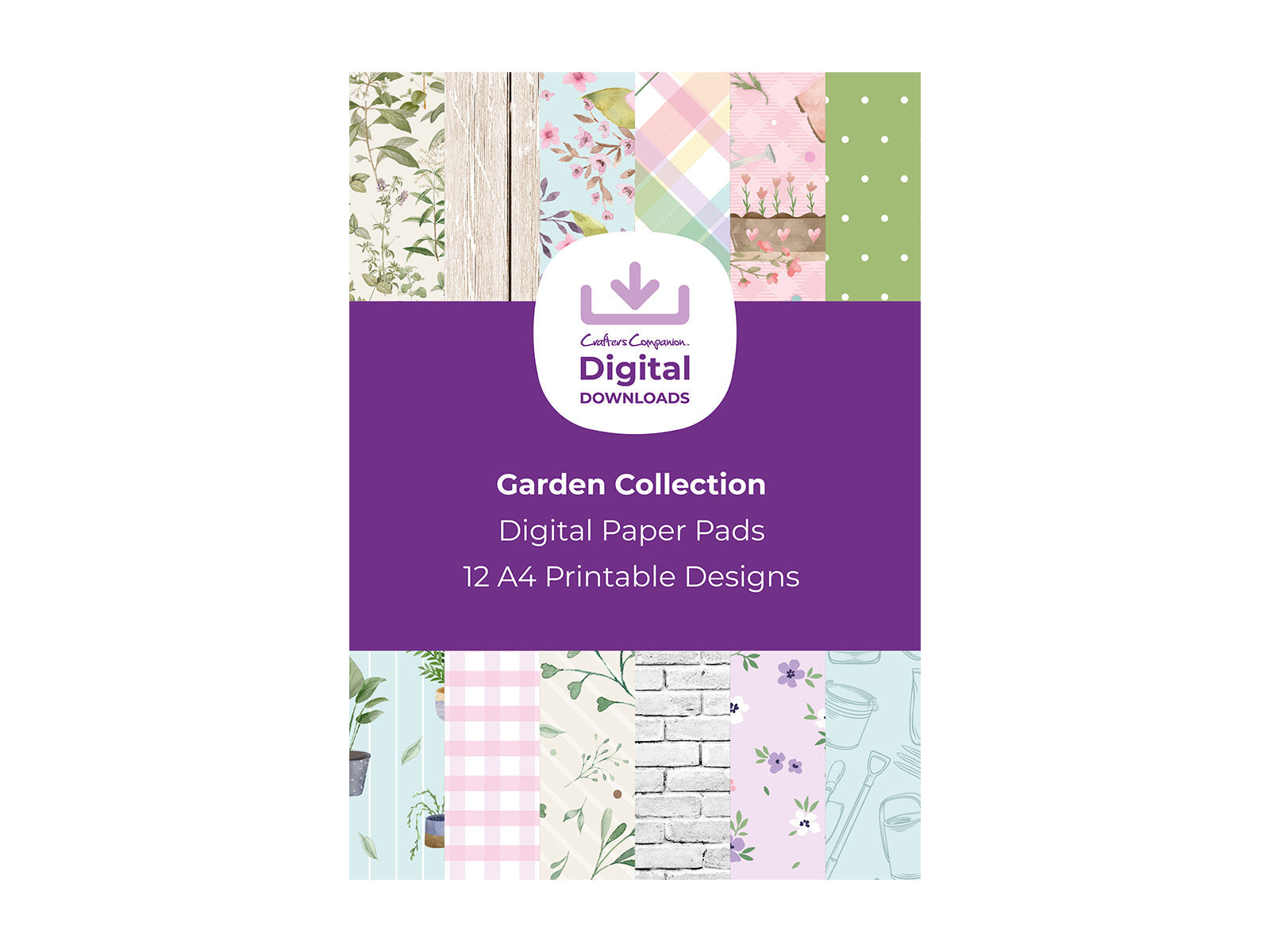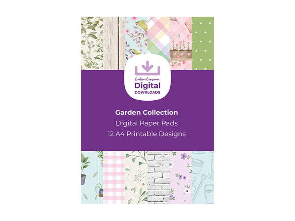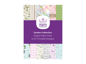The Garden Collection Digital Paper Pad includes 12 fresh and flourishing designs. Ditsy flower, classic gingham and stone and wood patterns sit alongside playful floral and garden illustrations.