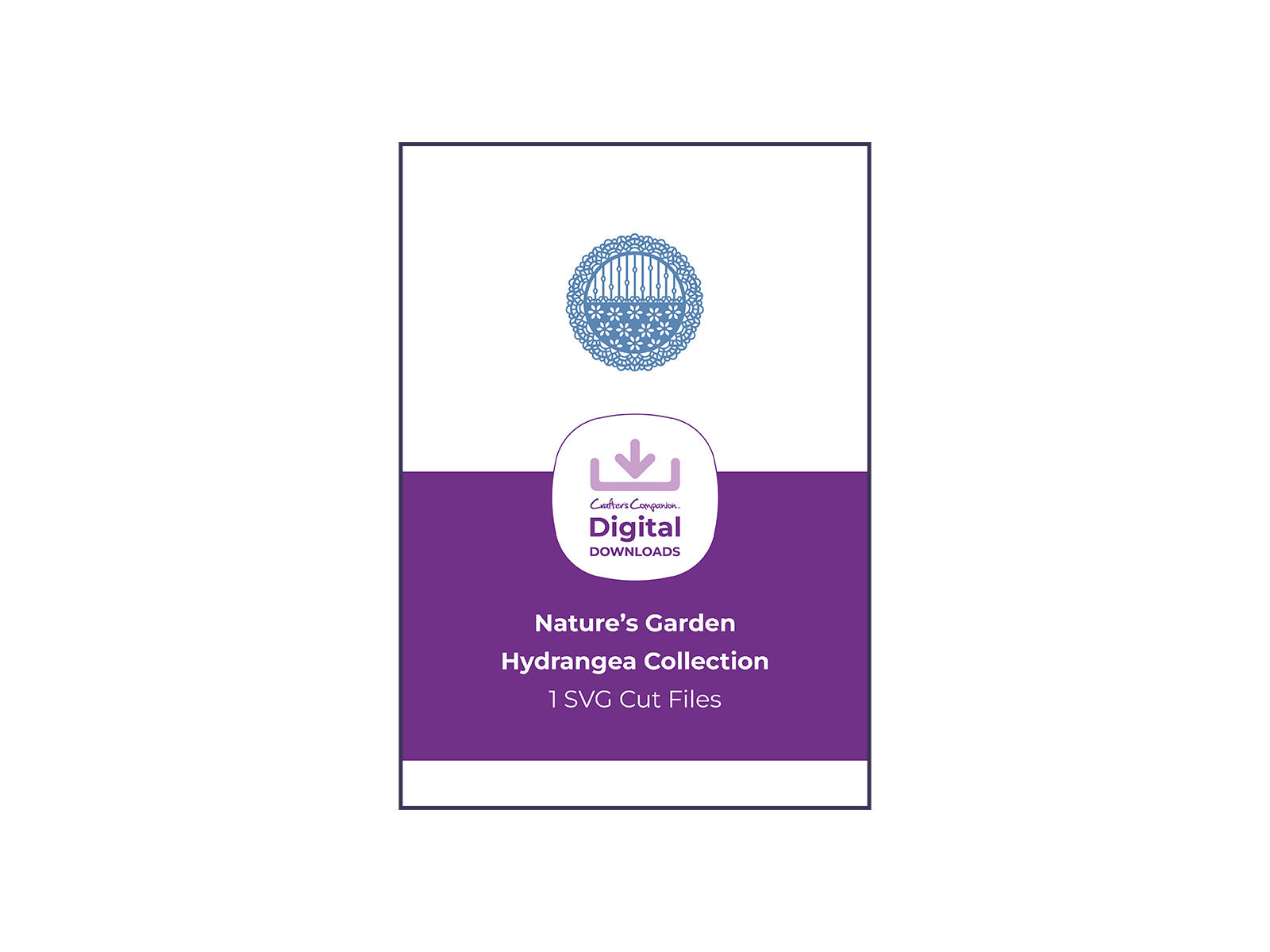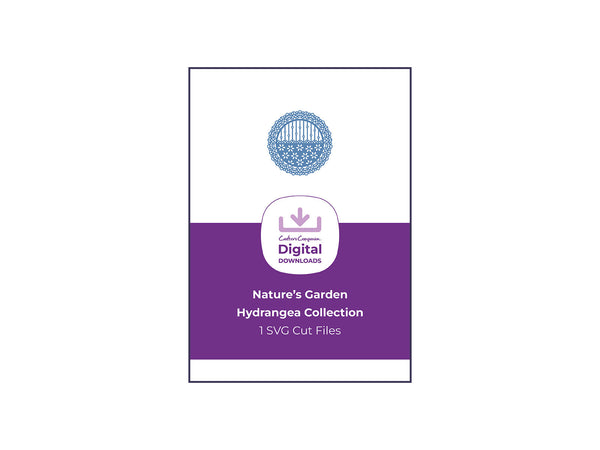 The Nature’s Garden Hydrangea SVG Dies a design to cut out an intricate circular design. Edged with classic lacy patterns the centre contains a charming, ditsy floral design. Perfect for your elegant handmade greeting cards, gift boxes, scrapbook pages, and more.