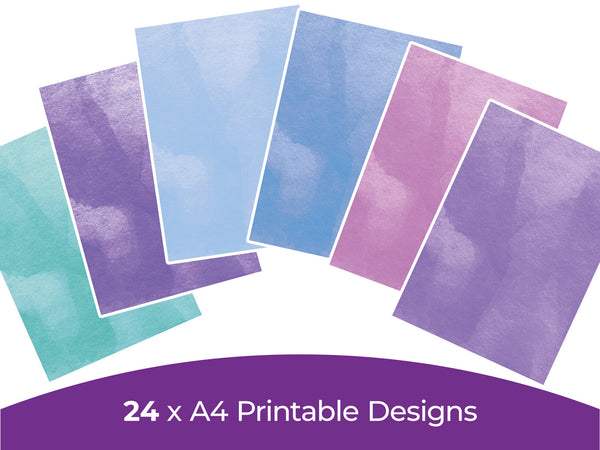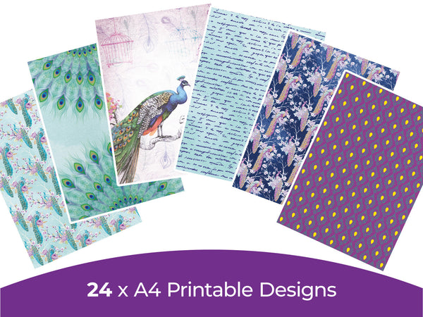 The Peacock Digital Paper Pad includes 24 beautiful peacock patterns and designs, feathers and in blue, green and purple tones, this paper pad is perfect for adding colour to your elegant designs.