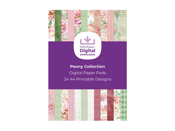 Let your creativity bloom with the Peony Collection Digital Paper Pad from Crafter’s Companion. This download includes 24 designs, featuring classic illustrations of peonies with an aged look, perfect for creating rustic papercrafts.