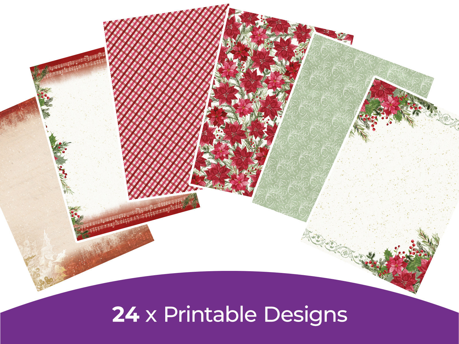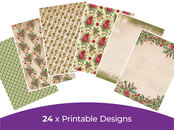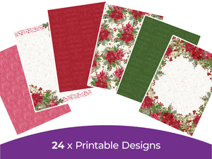 Fill your Christmas crafting with timeless elegance and bold seasonal colour using the Poinsettia Perfection Digital Paper Pad. This stunning collection captures the festive charm of the holidays with classic red poinsettias, rich green foliage, and crimson-red berries. From vibrant floral arrangements to delicately bordered backgrounds, every sheet brings a sense of warmth, tradition, and festive joy.