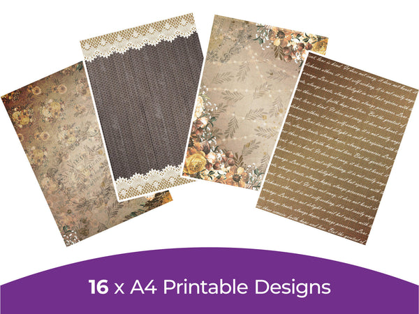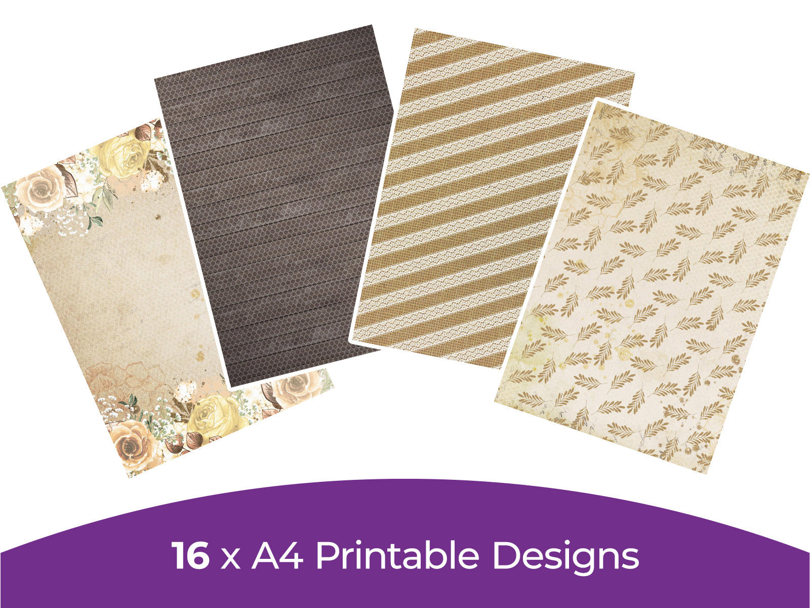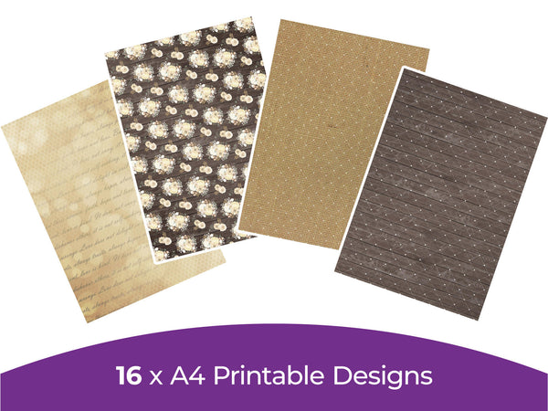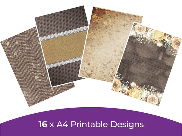 Bring homely looks to your crafts and projects with the Rustic Wedding Digital Paper Pad. With 16 designs in a gorgeous range of woody browns complete with the looks of planks, florals, and sentiments, they’re perfect to add a rustic touch to your crafts and projects.