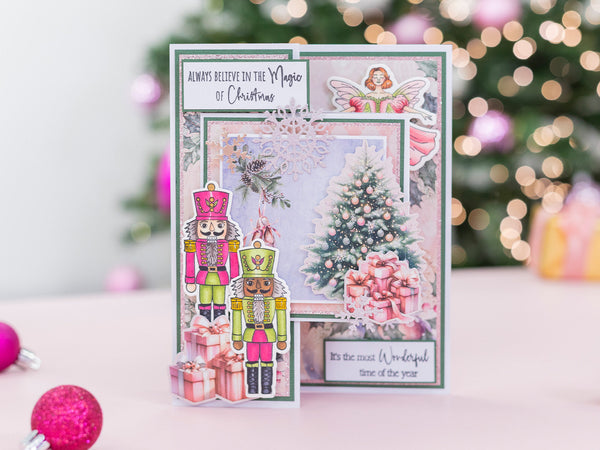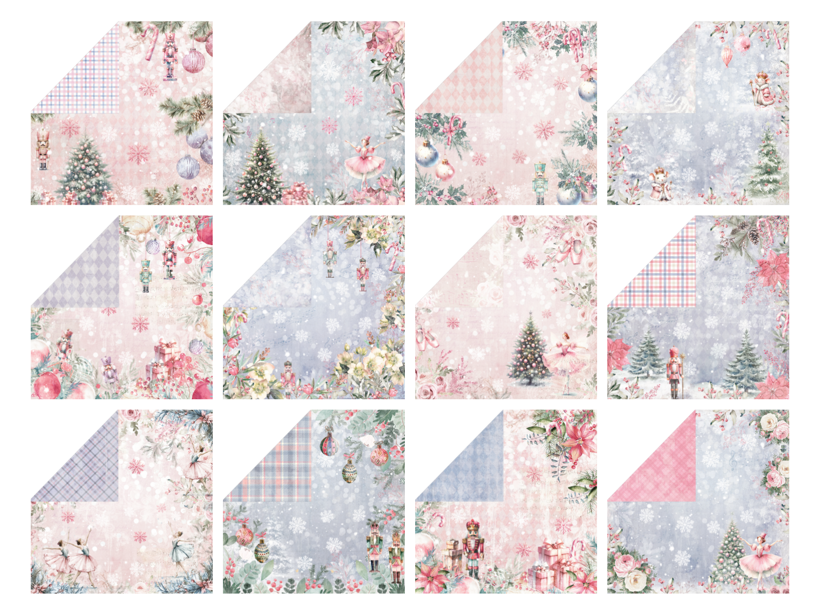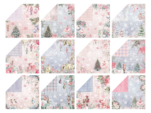 Each pad includes 24 double-sided sheets covered with the pastel pinks, blues, and purples featuring nutcrackers, Christmas trees, snowflakes, sugarplum fairies, and plenty of festive foliage and other seasonal images. It’s perfect for cardmaking, scrapbooking, giftboxes, and more.