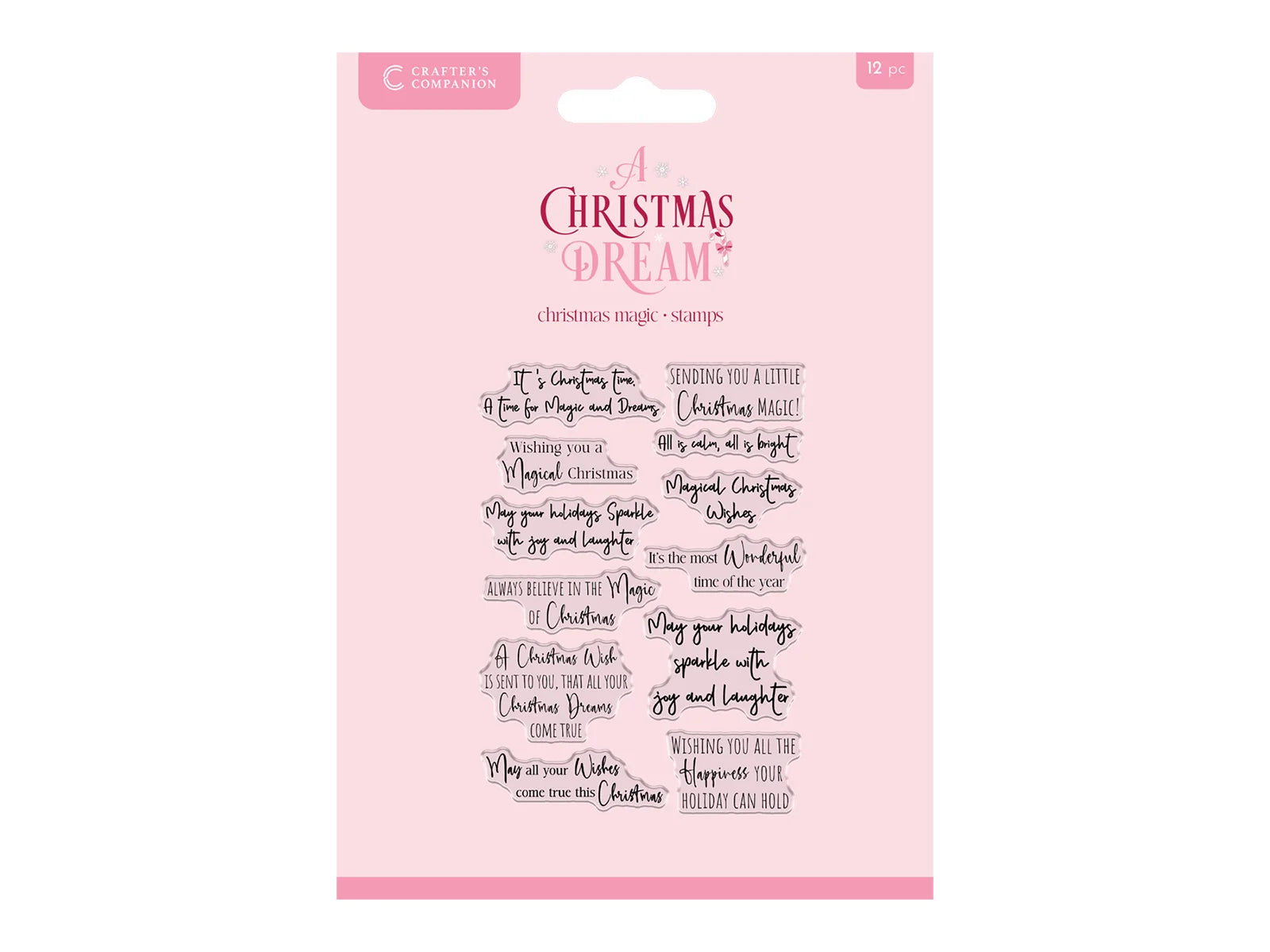 Spread the festive cheer with the Christmas Magic Clear Acrylic Stamps from the Sara Signature A Christmas Dream collection by Crafter’s Companion. This set comes with 12 Christmas-themed sentiment stamps to inject your next handmade Christmas card, bespoke gift box, and more with some extra festive cheer.