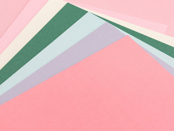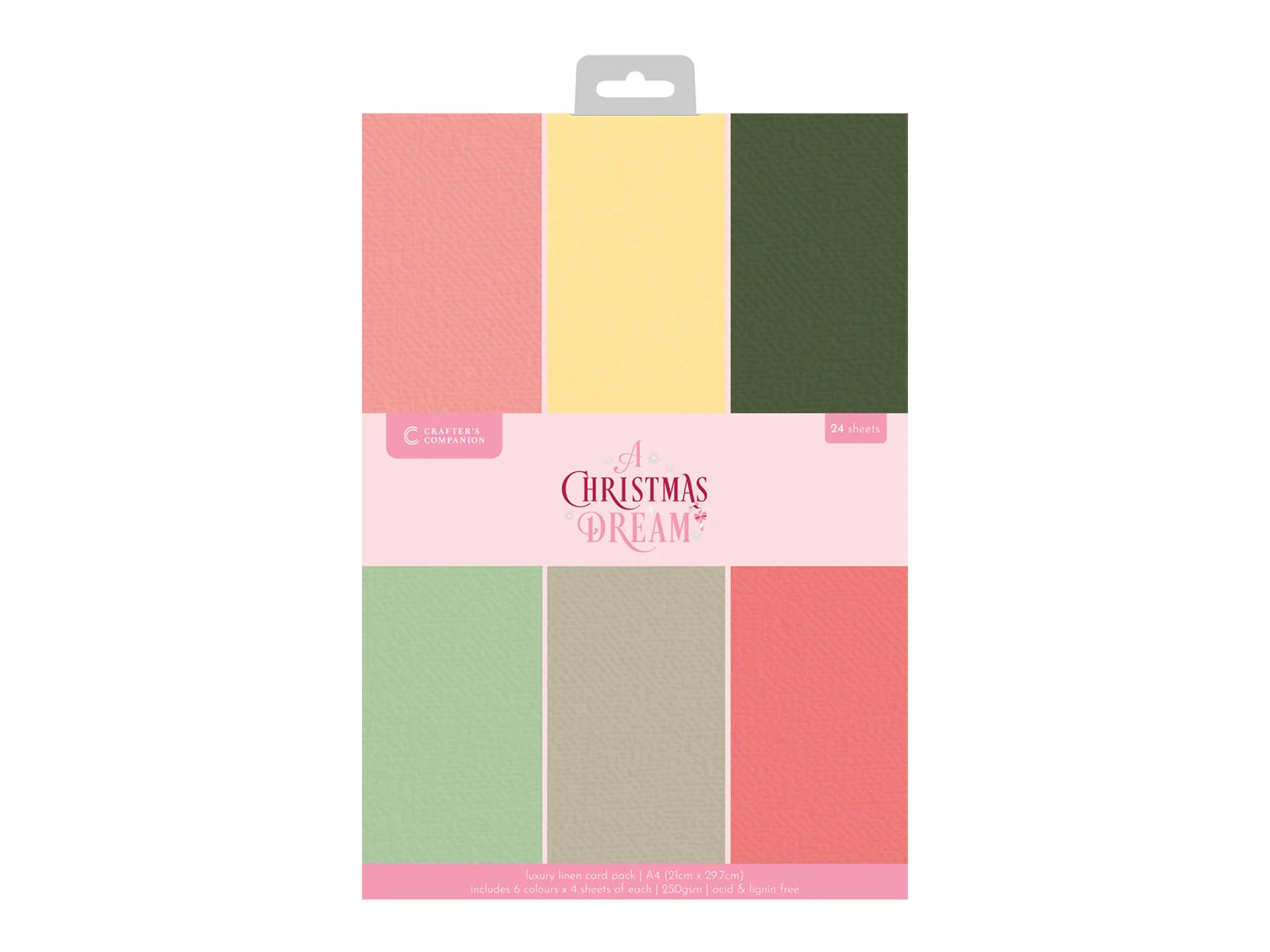 The A4 Luxury Linen Pack from the Sara Signature A Christ Dream collection by Crafter’s Companion includes six colours – forest green, lime green, pink, yellow, salmon, and grey.