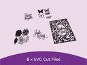 - 5 designs in a SVG Cut File format to use with an SVG-compatible cutting machine.