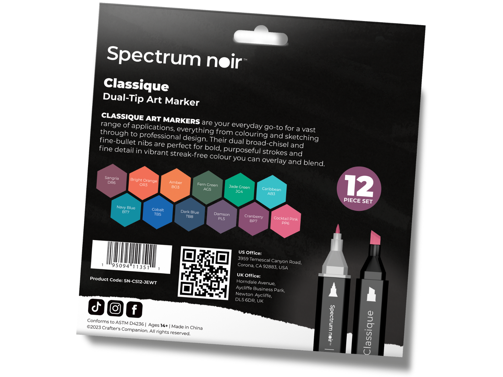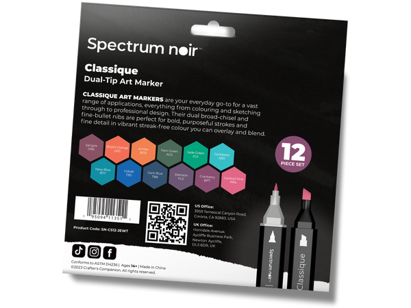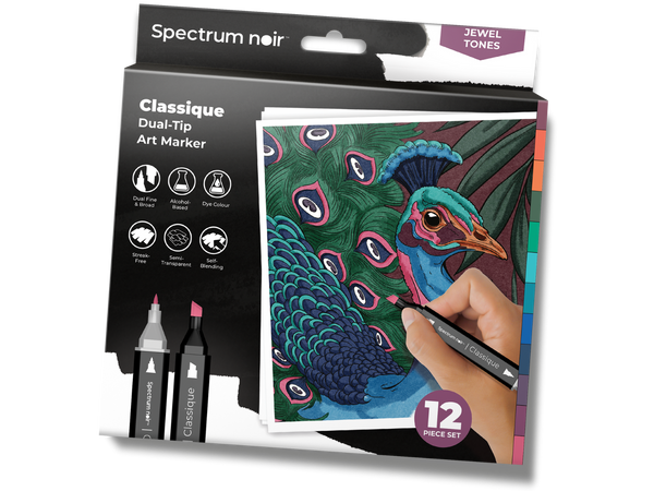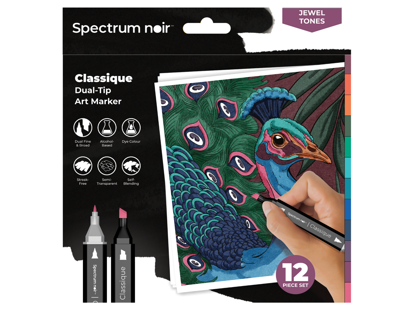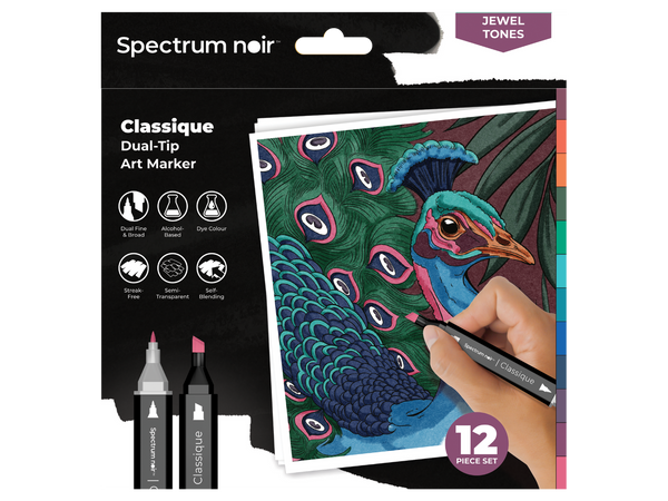 - Pack of Classique markers from Spectrum Noir in 12 rich shades.