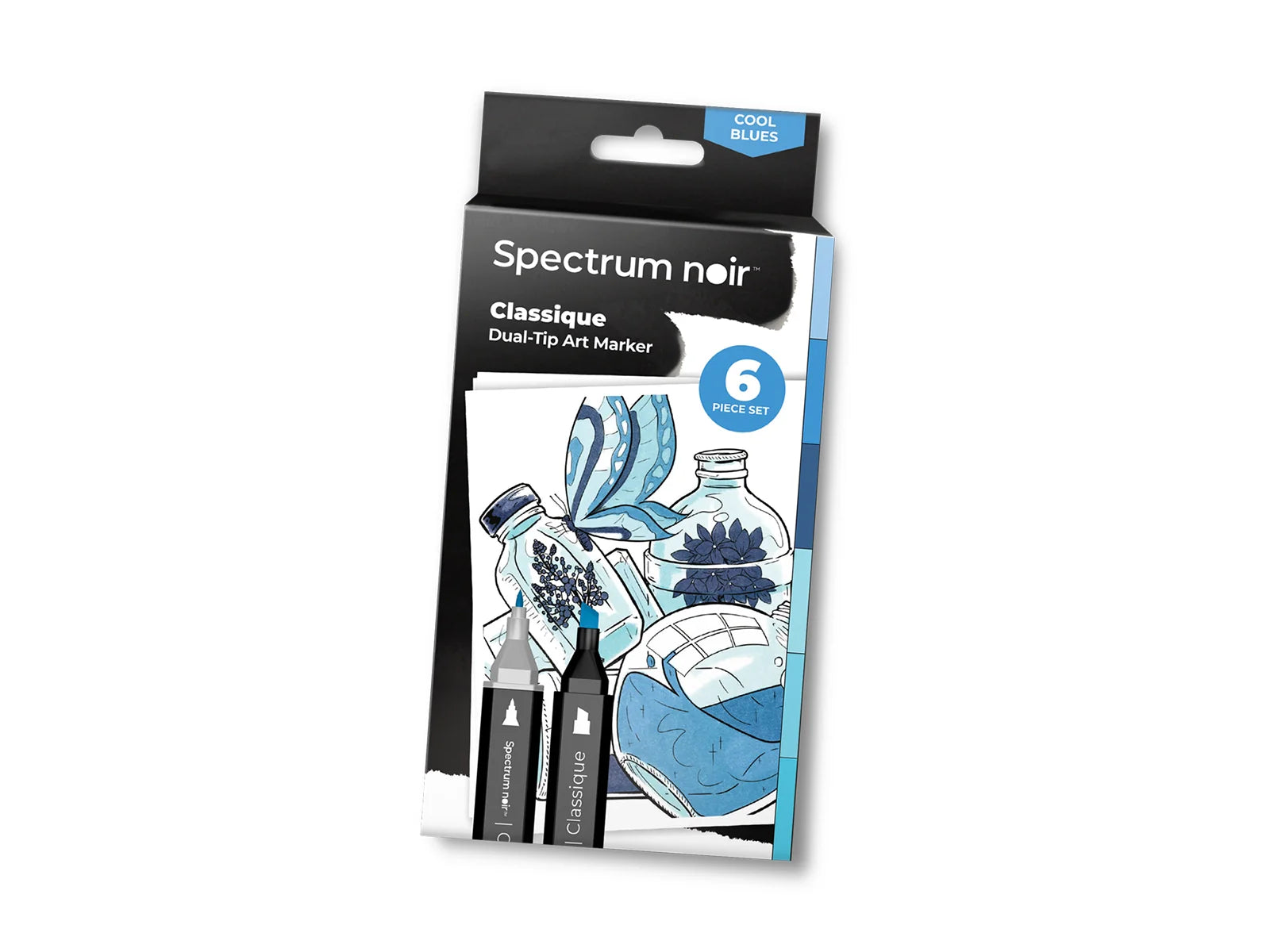 - Pack of Classique markers from Spectrum Noir in six shades of blue.