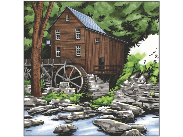 This 12-piece Natural Landscape set includes Sunshine, Periwinkle, Brown Grey 5, Green Grey 5, Apple, Emerald, Meadow, Grass, Olive Green, Moss Green, Cinnamon, and Coffee Bean.