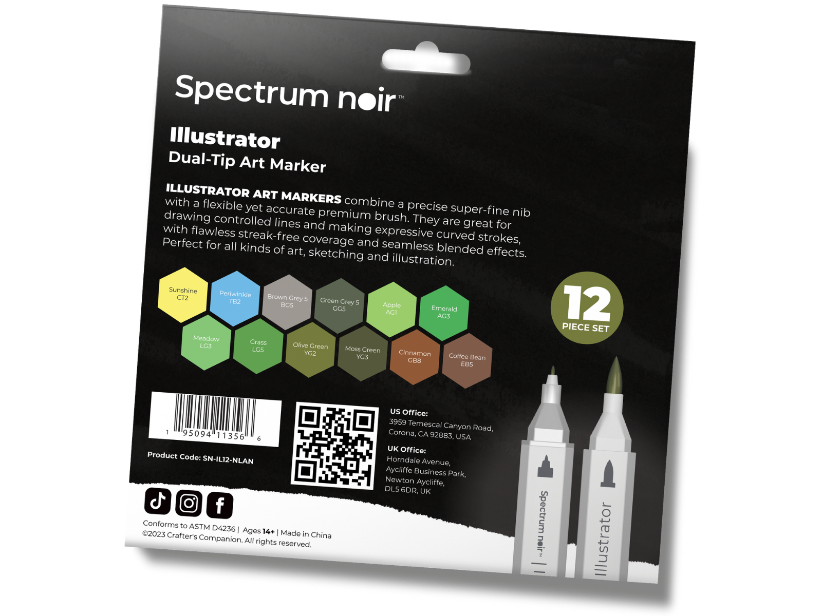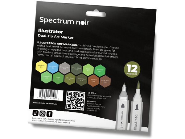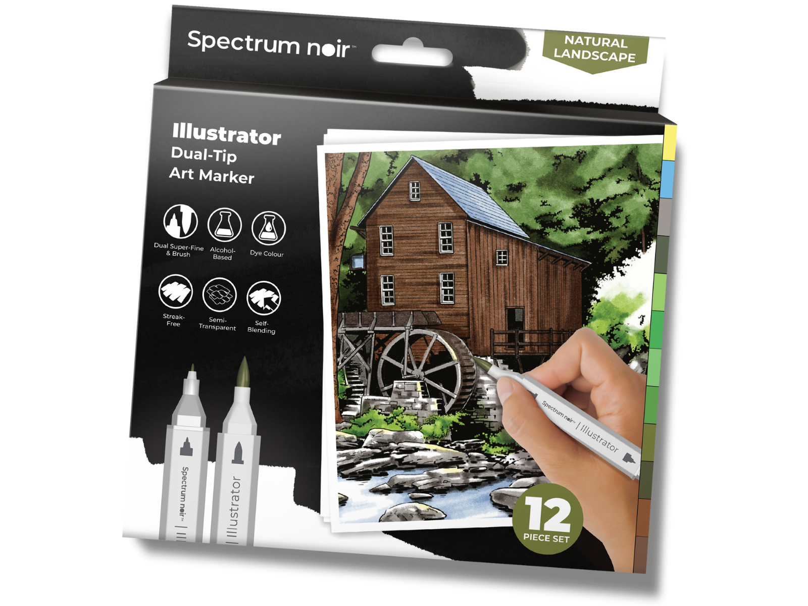 - Pack of Illustrator markers from Spectrum Noir in 12 landscape shades.