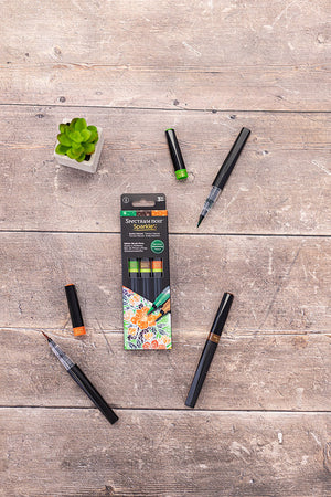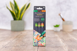 Each pen has a flexible brush tip for accurate, mess free application - making them perfect for lettering, embellishing, colouring and more! Each set in the updated Sparkle Brush Pen collection includes three pens, in a complementary palette of themed shades.